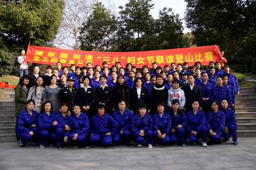 值此三八婦女節,金太陽(yáng)物業(yè)公司特地與湖東路街道聯(lián)系,組織了一場(chǎng)金太陽(yáng)物業(yè)公司與湖東路街道三八婦女節聯(lián)誼登山比賽。