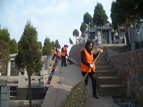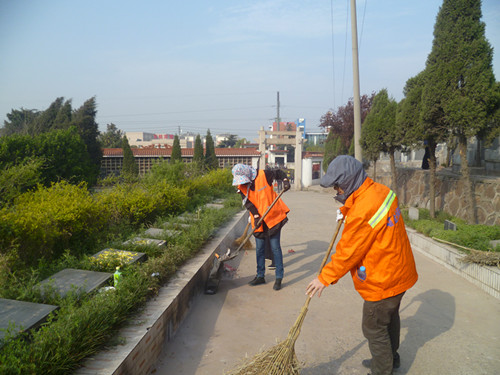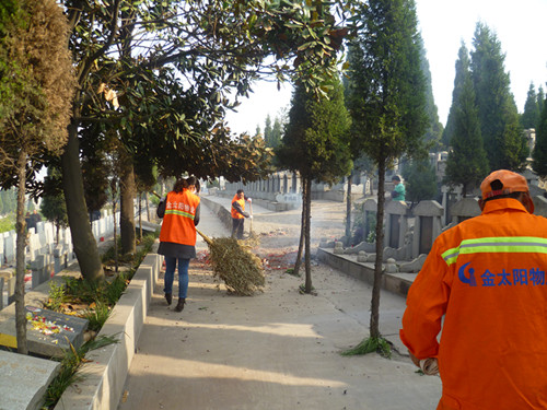 由于祭祀的人比較多,打掃起來(lái)還是比較困難的。但是金太陽(yáng)的管理人員以及保潔員不怕臟不怕苦,將陵園打掃干凈。